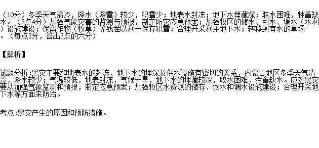 我国北方牧区冬季人、畜饮水主要依靠积雪。积雪不足的年份,牲畜缺水,膘情下降,甚至大批死亡,这种现象称为黑灾。黑灾和地表水的封冻、地下水的埋深及供水设施也有密切关系。2015年11月,内蒙古呼伦贝尔草原睛冷天气为主,出现较严重的黑灾。