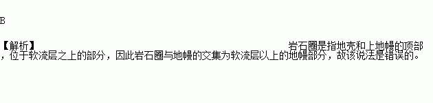 岩石圈与地幔的交集即为软流层。