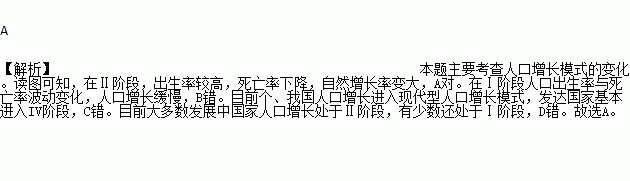 D. 目前大多数发展中国家人口增长处于Ⅲ阶段,有少数还处于Ⅰ阶段
