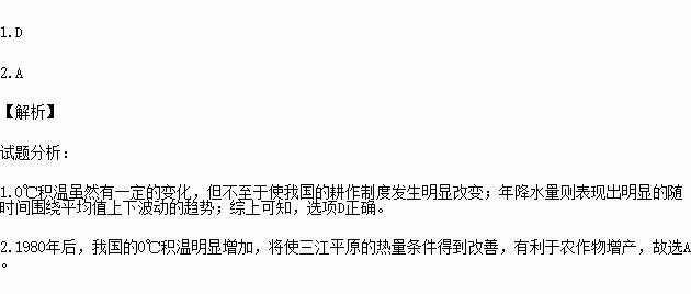 2.1980Äêºó£¬Ë®ÈÈÌõ¼þ±ä»¯ÄÜʹÆäũҵÉú²úÃ÷ÏÔÊÜÒæµÄÇøÓòÊÇ