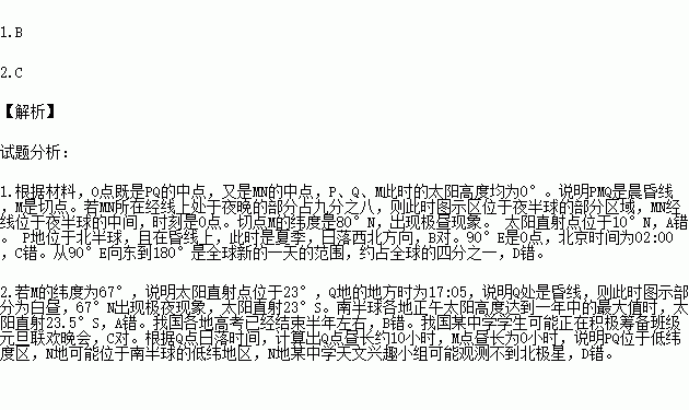 2.ÈôMµÄγ¶ÈΪ67¡ã£¬ÇÒQµØµÄµØ·½Ê±Îª17:05£¬Ôò´Ëʱ