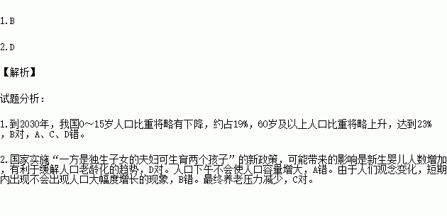 1.µ½2030Ä꣬ÎÒ¹ú0¡«15ËêºÍ60Ëê¼°ÒÔÉÏÈ˿ڱÈÖØ½«·Ö±ð´ïµ½( )