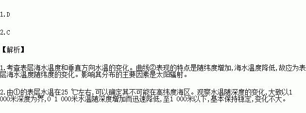 2.若图中①曲线表示的是某地的海水温度垂直变化,则下列说法正确的是( )