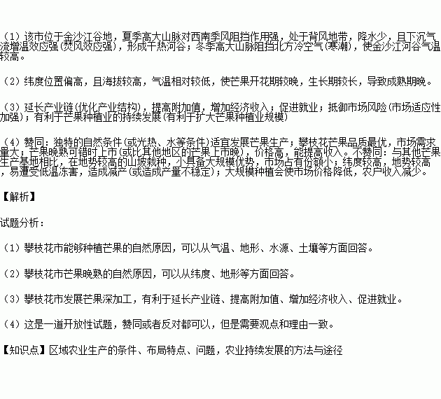 (1)分析攀枝花市能够种植芒果的自然原因。