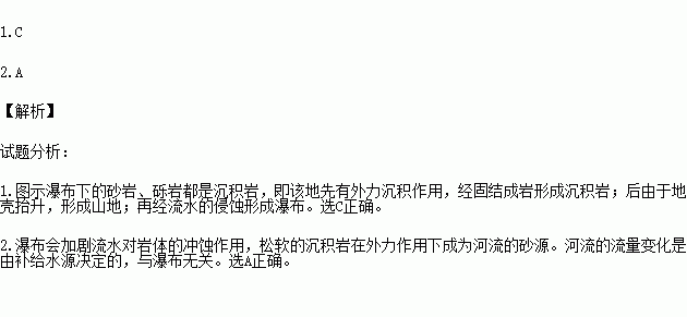 1.该瀑布形成的地质作用过程是