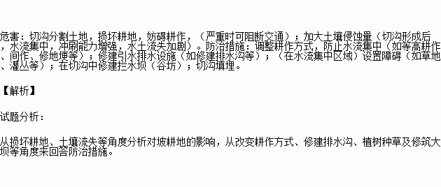 坡耕地上的切沟由流水侵蚀而成。下图为切沟景观。