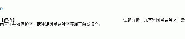 D. 九寨沟风景名胜区、云南三江并流保护区、武陵源风景名胜区