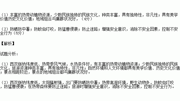 (2)提出在西双版纳旅游应采取的安全防范措施。