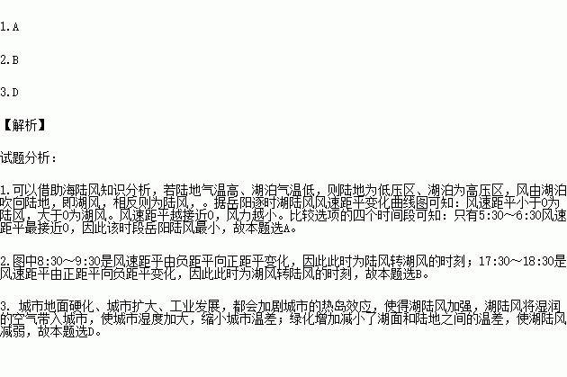 1.下列四个时段中,为岳阳陆风最小的时段是