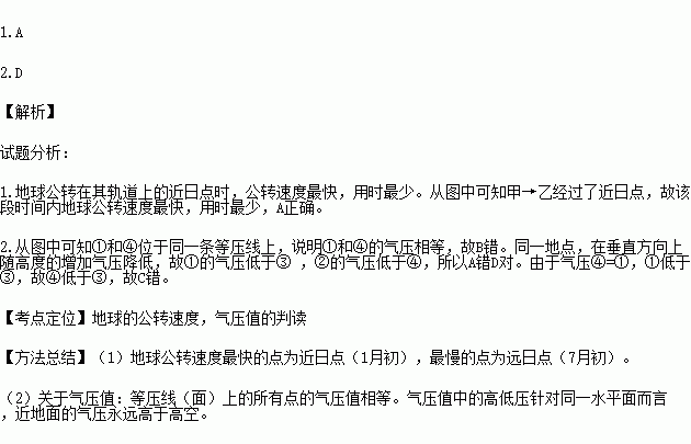 1.地球在其公转轨道上运动所用的时间最少的一段是