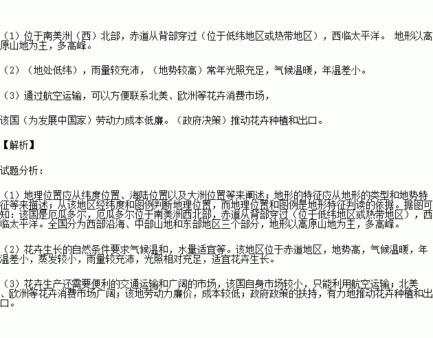 (1) 说明该国有利于花卉生长的自然条件。