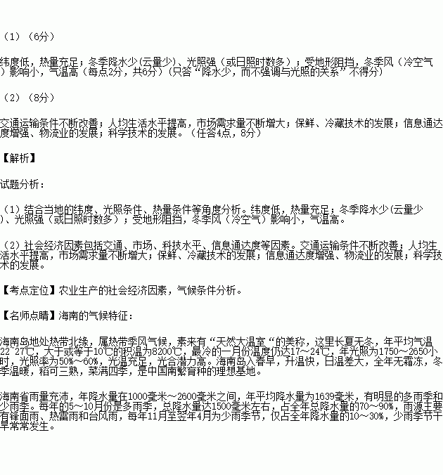 £¨2£©º£ÄÏÒÑÖð²½³ÉΪȫ¹úÈËÃñ¶¬¼¾µÄ¡°²ËÀº×Ó¡±,ÊÔ´ÓÉç»á¾¼ÃÒòËØ±ä»¯µÄ½Ç¶È·ÖÎöÆäÔÒò¡££¨8·Ö£©