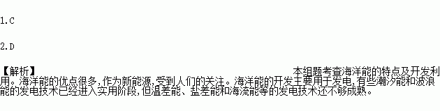 2.对于海洋能的开发利用,叙述正确的是( )