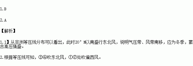 下图为非洲局部地区某季节等压线分布图。读图,完成各题。
