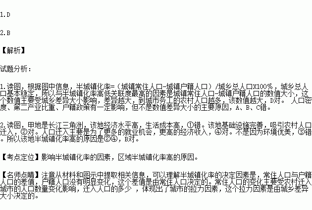 2. ¼×µØÊÇÎÒ¹ú°ë³ÇÕò»¯ÂÊ×î¸ßµÄµØÇø¡£¸ÃµØ°ë³ÇÕò»¯ÂʸߵÄÖ÷ÌâÔÒòÊÇ£¨ £©