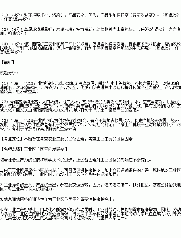 £¨3£©·ÖÎö·¢Õ¹¡°¾»ÍÁ¡±½¡¿µ²úÒµ¶ÔÎ÷²ØµØÇø·¢Õ¹µÄÓÐÀûÓ°Ïì¡£