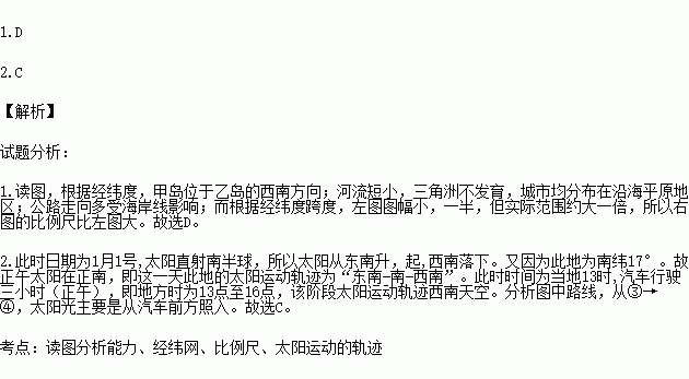 2.ijÓοÍÓÚµ±µØÇøÊ±1ÔÂ1ÈÕ13ʱ³ö·¢£¬ÓÃ3Ð¡Ê±ÑØ¼×µºµÄ»·µº¹«Â·Ä³Ò»¶Î×Ô¼ÝÓΣ¬ÆÚ¼äÌ«Ñô¹âÖ÷Òª´ÓÆû³µÇ°·½ÕÕÈë¡£¸ÃÆû³µÐÐÊ»µÄ·¶Î¼°·½ÏòÊÇ£¨ £©