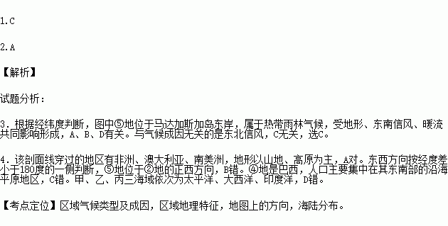 1.与图中⑤地气候成因无关的是