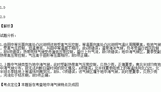 1.可能与图中大气特征相符的气候类型是( )