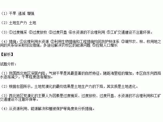 (3)简述西北荒漠化的人为因素。(4分)