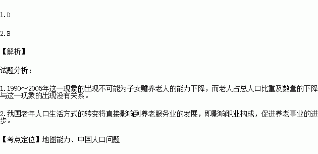 1. 1990~2005年我国老年人口选择与子女居住在一起的比重下降的最可能原因是
