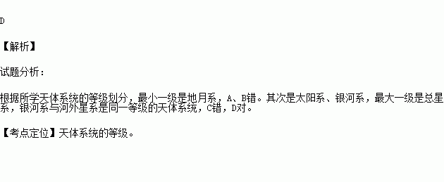 天体系统的层次,由小到大排列顺序正确的是