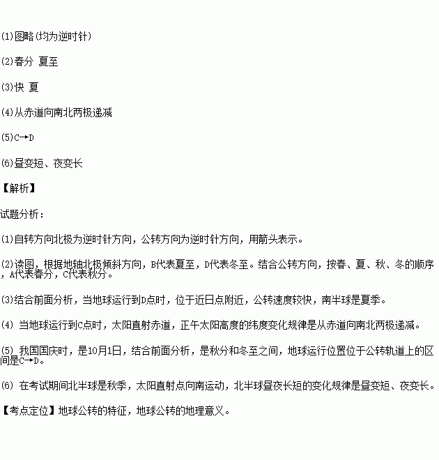 (3)µ±µØÇòÔËÐе½Dµãʱ£¬¹«×ªËٶȽÏ______£¬ÄϰëÇòÊÇ______¼¾¡£