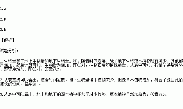 C.灌木植物茂盛、草本植物萎缩 D.灌木植物萎缩、草本植物茂盛