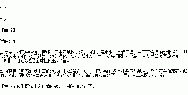 阅读材料及“中哈石油管道建设示意图”,回答下列各题。