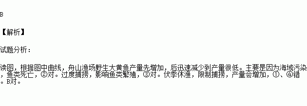 下图为舟山渔场野生大黄鱼产量变化统计图。 1975年以来产量变化的主要原因有