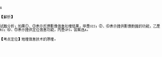 如果①、③表示反馈影像信息处理结果,②、⑥表示提供影像数据的功能,④、⑤表示提供定位信息功能。关于甲、乙、丙的说法正确的是( )