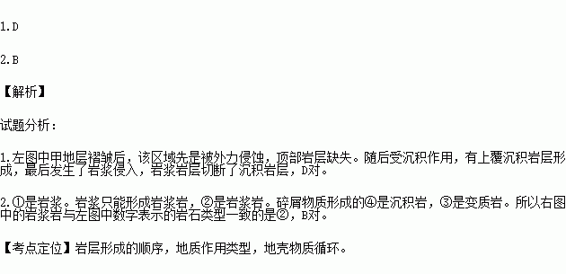 2.右图中的岩浆岩与左图中数字表示的岩石类型一致的是