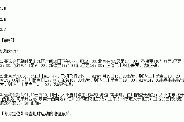 韩国港口城市仁川(37°28′N,126°37′E)位于该国西北部,是第17届亚洲运动会的承办城市,东九区时间2014年9月19日下午6点,本届亚运会开幕式在仁川亚运会主竞技场举行,于10月4日闭幕。结合所学知识,完成下题。