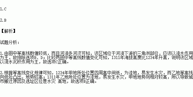 1.图示时期,该地地貌变化的自然原因是