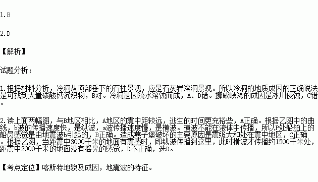 ¿ËÀïÃ×ÑÇΪŷÖÞÂÃÓÎÊ¥µØ£®Àä¶´ÊǸõØÇ¡Ìá¶û´ï¸ñɽ×î´óµÄ¶´Ñ¨£¬ËüÏñÒ»×ùÃÔ¹¬£¬¶´ÄÚÓгأ¬³ØË®ÇåÀ䣬Òò¶ø³Æ×÷¡°Àä¶´¡±¡£¶´¶¥ÓÐÖÚ¶àʯÖù´¹Ï£¬ÈËÐÐÆäÖУ¬ÈçÈëË®¾§¹¬¡£ÑŶûËþº£±ßÇͱÚÉϵÄÑà×Ó±¤ÊÇ¿ËÀïÃ×ÑǵÄÏóÕ÷£®1927ÄêÑŶûËþ·¢Éú´óµØÕð,±¤¶¥µÄ¼â¶ËµôÈë´óº£¡£ÒÒͼΪµØÕðµÄʱ¾àÇúÏߣ¨µØÕð²¨ËæÊ±¼ä¶ø´«²¥¾àÀë²îÒ죩£¬»Ø´ðÏÂÁи÷Ìâ¡£