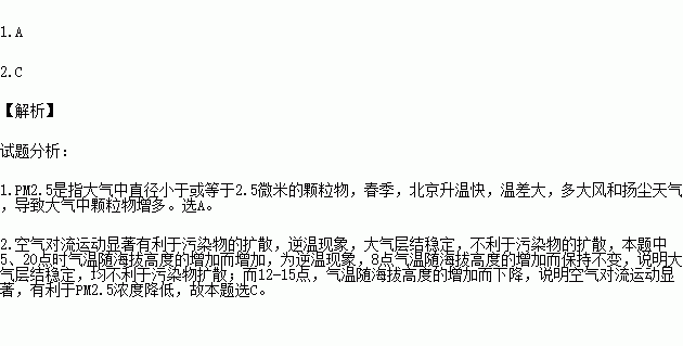 PM2.5ÊÇÖ¸´óÆøÖÐÖ±¾¶Ð¡ÓÚ»òµÈÓÚ2.5΢Ã׵ĿÅÁ£ÎҲ³ÆÎª¿ÉÈë·Î¿ÅÁ£ÎĿǰ±±¾©PM2.5µÄÖ÷ÒªÀ´Ô´Óлú¶¯³µ¡¢µç³§¡¢¹øÂ¯¡¢Ñï³¾¡¢½Õ¸Ñ·ÙÉյȡ£´ó·çºÍÉÏÉýÆøÁ÷ÓÐÀûÓÚÎÛȾÎïµÄÀ©É¢¡£Í¼Îª±±¾©Ä³ÈÕ5´Î¹Û²âµ½µÄ½üµØÃæÆøÎ´¹Ö±·Ö²¼Ê¾Òâͼ¡£»Ø´ðÏÂÁÐÎÊÌâ¡£