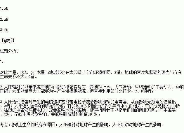 1.与木星相比,地球上之所以存在生命,其原因是 ( )