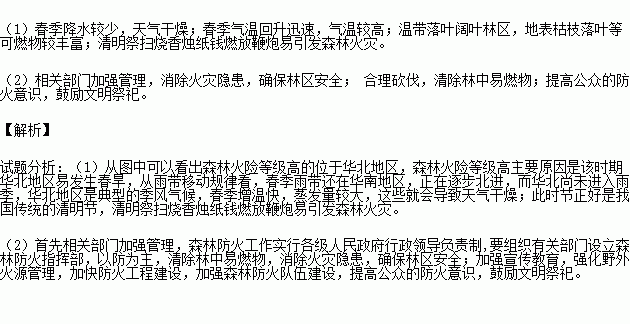 (1)该时期图示区域森林火险等级高的原因有哪些?