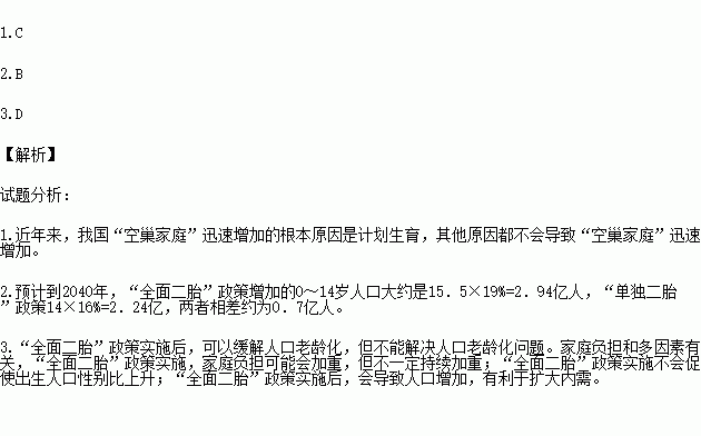 A.解决人口老龄化问题 B.家庭负担持续加重