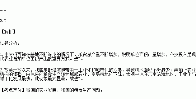 1.近年来,我国粮食总产量连续增长的主要原因是