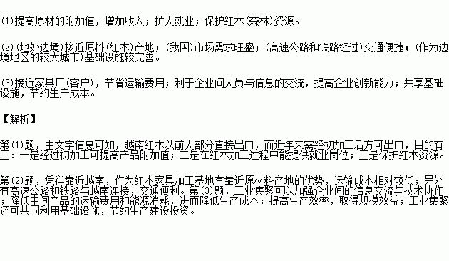 (1)说明越南限制红木原材出口的原因。