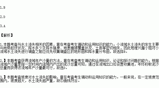 3.下图是几位同学根据调查结果绘制的坡度与单位面积产沙量关系曲线,其中符合水土流失一般规律的是( )