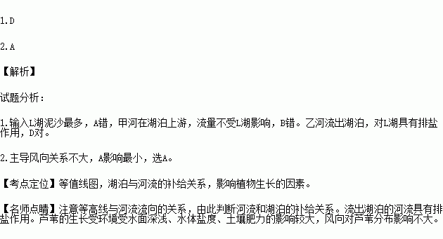 L湖原是新疆最大的淡水湖,近年来已演变成微咸水湖。现在该湖西部沿岸芦苇广布,而东部沿岸几乎没有。下图示意L湖及周边地区,读图回答下列各题。