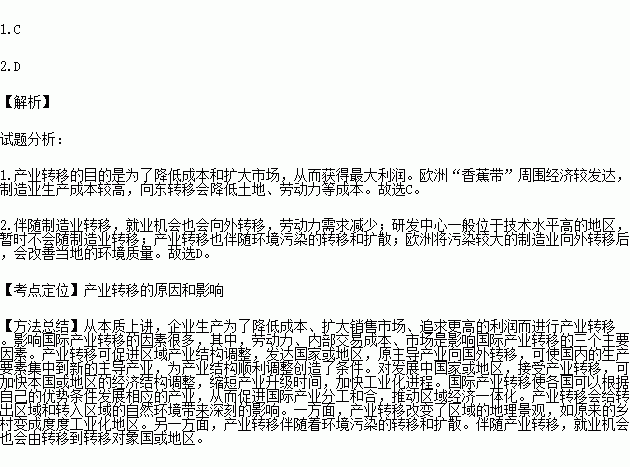 1.促使欧洲制造业生产向东转移的主要原因是( )