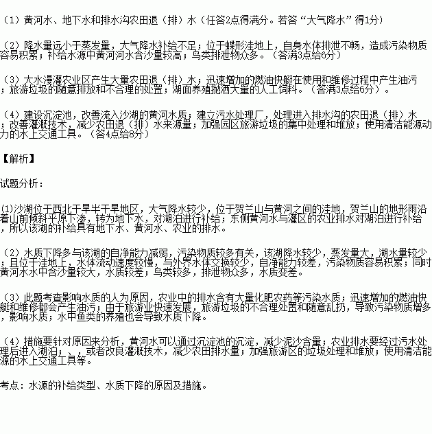 (1)说出沙湖水的主要补给来源。