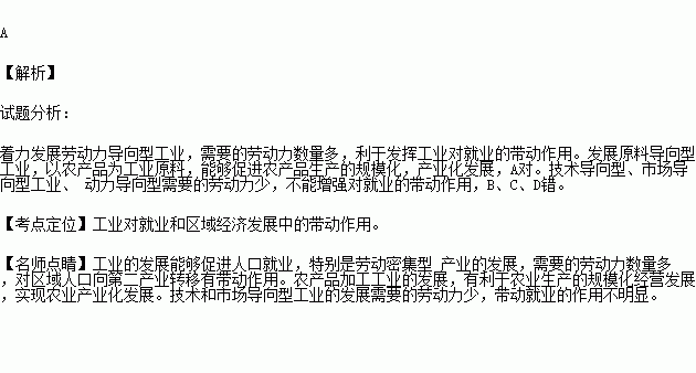 C. 动力导向型和劳动力导向型工业 D. 原料导向型和技术导向型工业