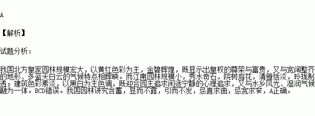 C.北方皇家园林显示了皇权追求闲适、宁静的心理需要,而江南私家园林追求荣华富贵