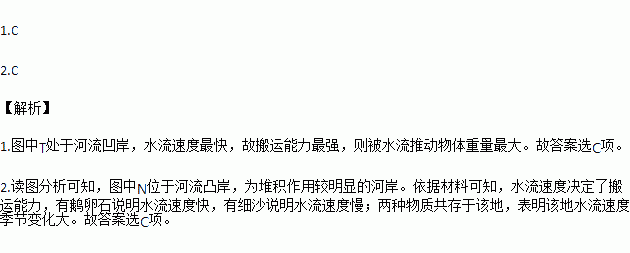 2.某地质爱好者在N地附近,发现河床垂直剖面上有鹅卵石与细沙共存现象,原因可能是