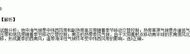 下列气候类型不属于全球气压带、风带季节移动而产生的是( )