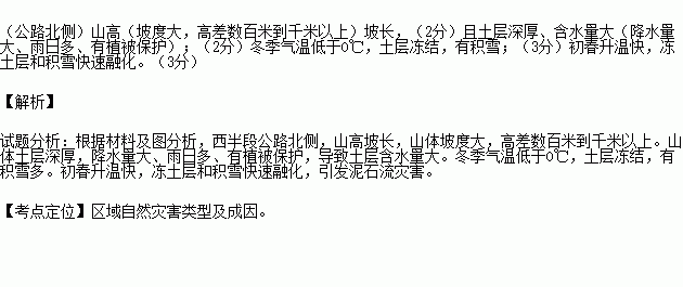 分析图示区域公路西半段初春多发泥流灾害的原因。